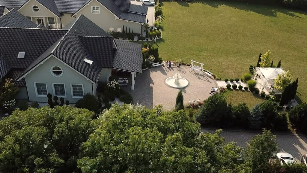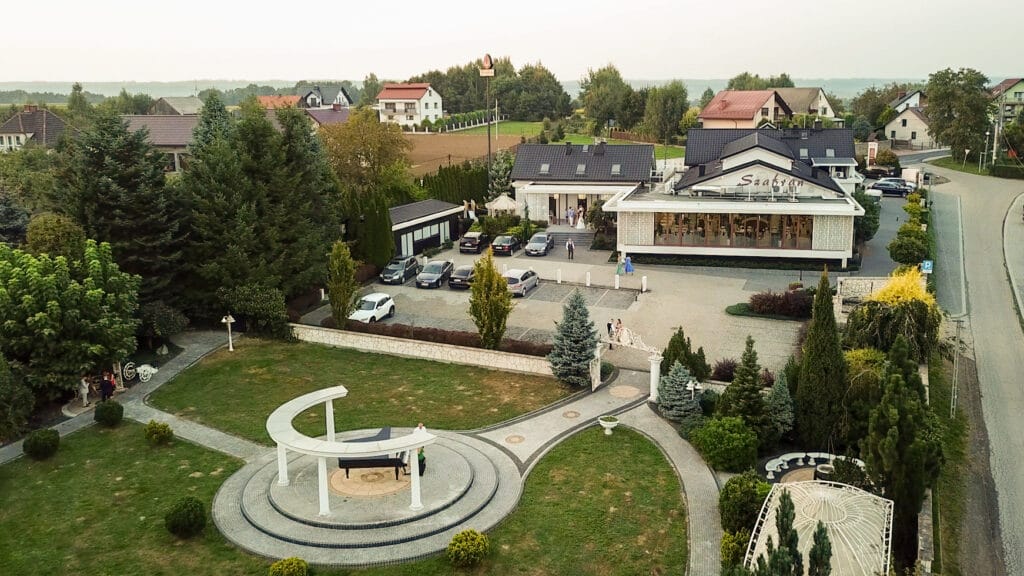Sala weselna na przedmieściach lub gdzieś po prostu na wsi, najczęściej ma do zaoferowania atrakcyjne miejsca w okół sali. Poza atrakcjami przygotowanymi tam na gości, jest to super miejsce również dla mnie i Pary Młodej. Możemy tam wyskoczyć na chwilę i zrobić trochę ujęć filmowych lub zdjęć. Dobrze jest przypilnować momentu, kiedy słońce będzie zachodzić. Wtedy jest szansa na naprawdę piękne, naturalne światło.